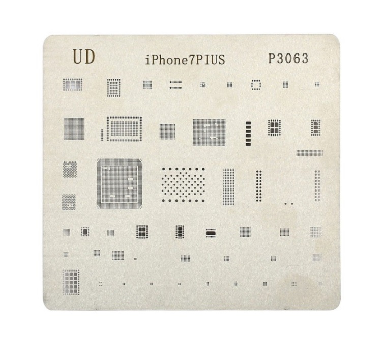 Трафарет BGA для iPhone 7 Plus представляет собой удобное и эффективное решение для позиционирования микросхемы. Он оснащен специальными выемками, которые обеспечивают точное и надежное размещение микросхемы на печатной плате.