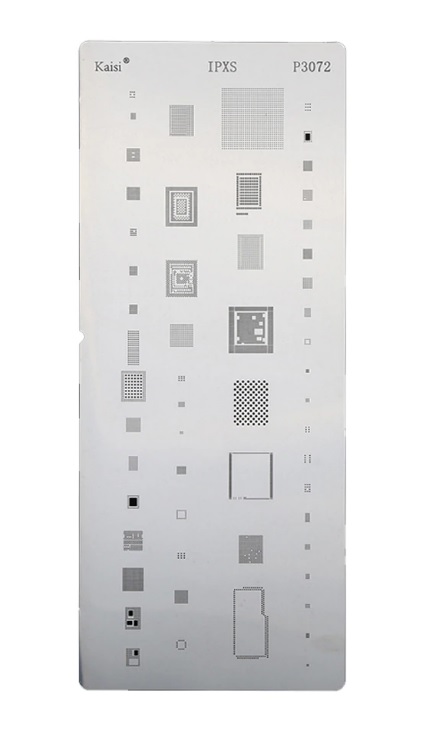 Трафарет выполнен из толстого металла, который не подвержен деформации, как обычный трафарет BGA.