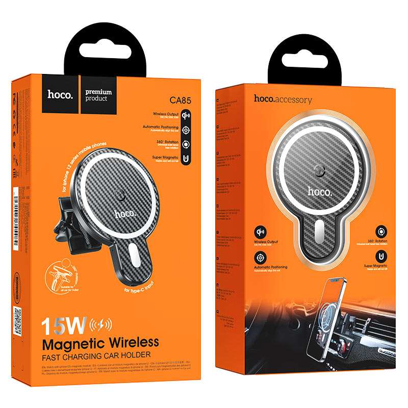 Держатель автомобильный с беспроводной зарядкой MagSafe HOCO CA85 Ultra-fast, черный