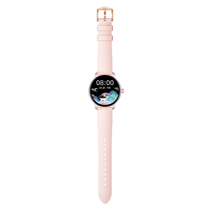 Смарт часы HOCO Y6 (Экран: ёмкостный сенсорный TFT экран,1.09 дюйма, разрешение: 240*240. Уровень защиты от воды IP68, 13 спортивных режимов, сердечный ритм, кислород в крови, мониторинг сна, 18 языков), розовые