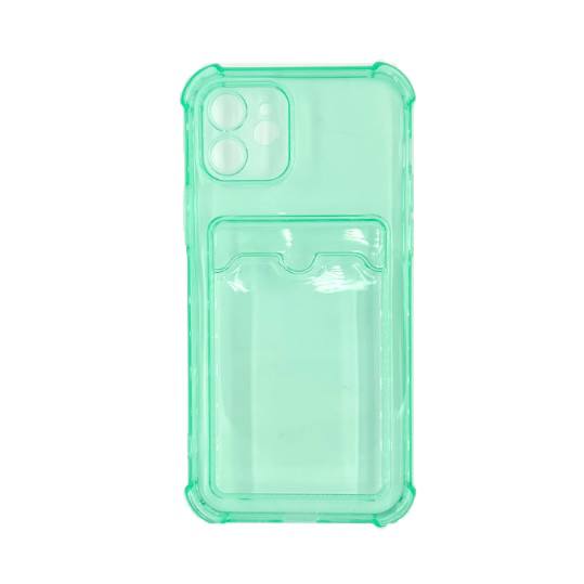 Чехол силиконовый противоударный с визитницей iPhone 12/ 12 Pro прозрачный, зеленый