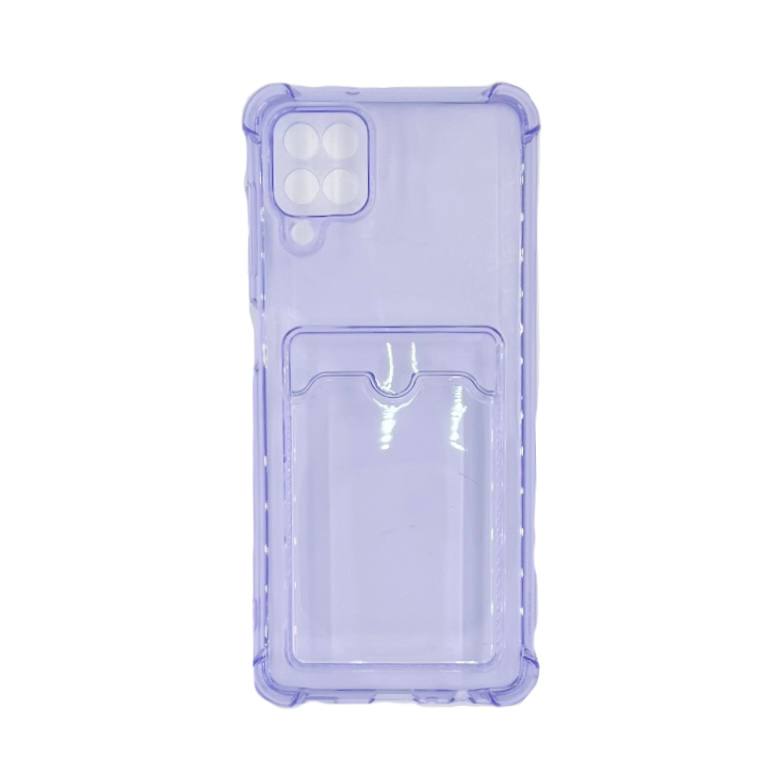 Чехол силиконовый противоударный с визитницей Samsung A12/ M12 прозрачный, сиреневый
