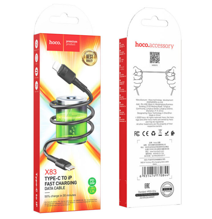 Кабель Hoco X83 обеспечит высокую скорость передачи данных и быстрый заряд аккумулятора всех устройств, поддерживающих разъем Lightning.