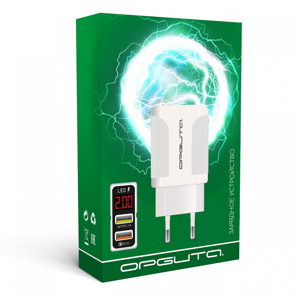 Сетевой USB адаптер Орбита OT-APU59 + QC 3.0 (3000mAh), белый