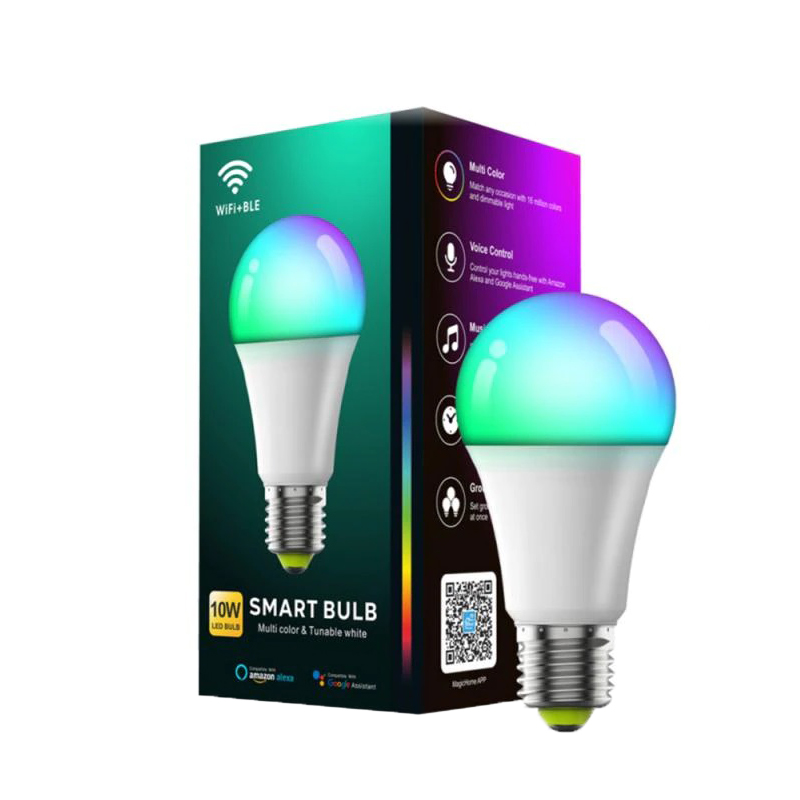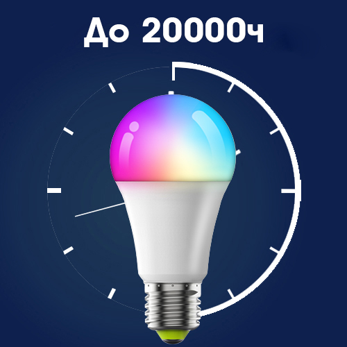 Умная лампочка OT-HOS16 (E27, 10Вт, Wi-Fi, Bluetooth, цвет: белый холодный + белый теплый + цветной RGB)
