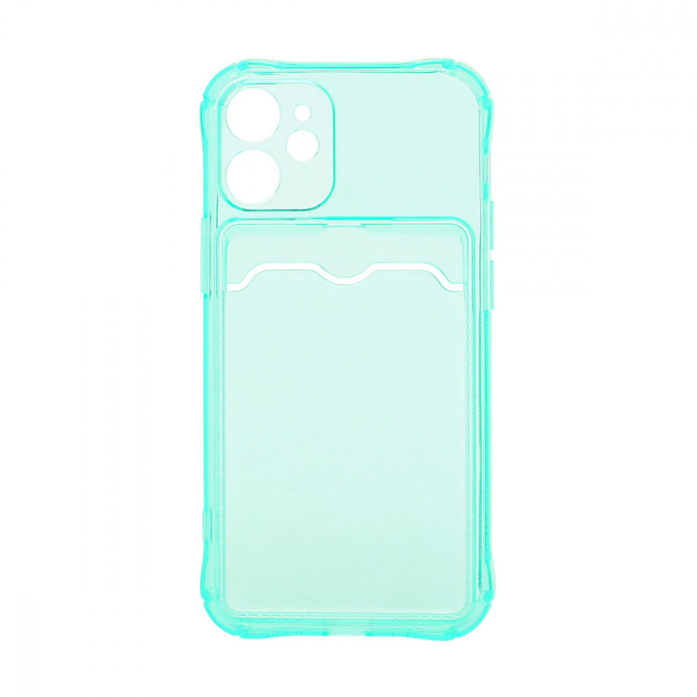 Чехол силиконовый с визитницей для iPhone 12 mini прозрачный мятный