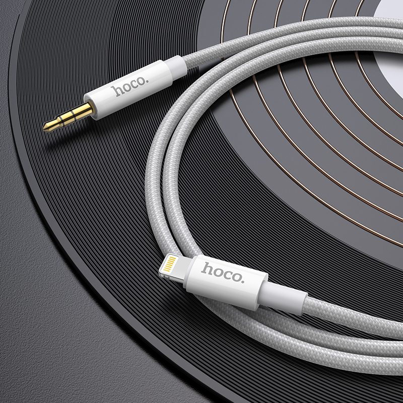 Кабель AUX джек 3,5 вход - Lightning HOCO UPA19 (100см), серебристый