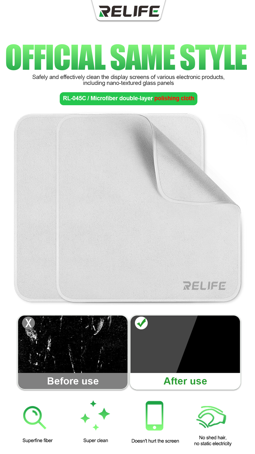 Салфетка тканевая для очистки оптики RELIFE RL-045C (двухслойная микрофибра)