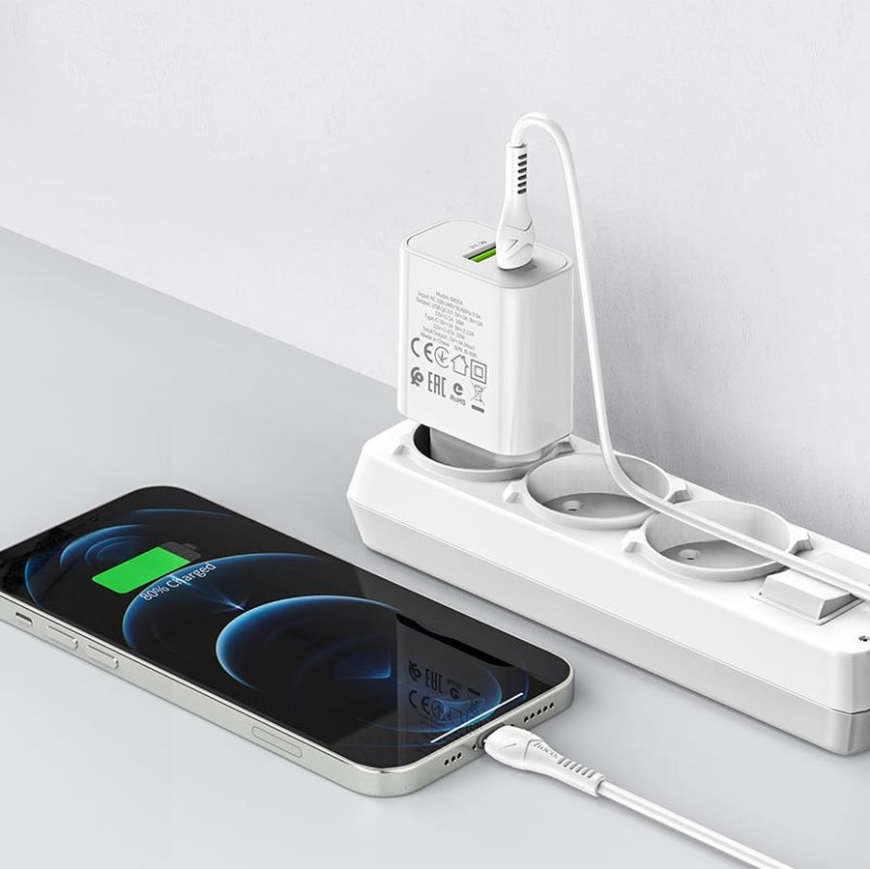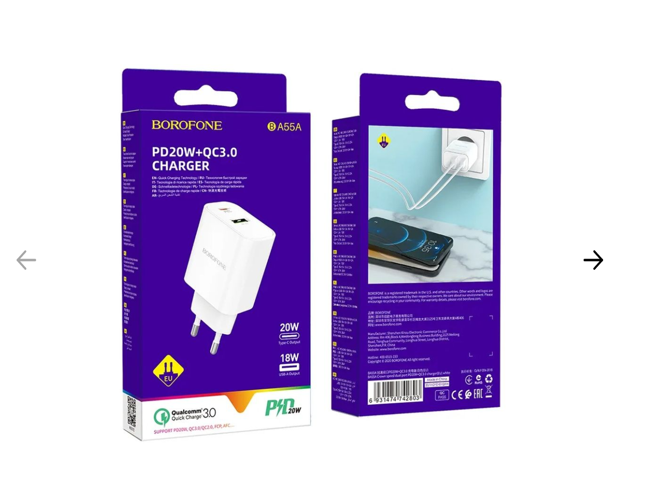 Сетевой адаптер BOROFONE BA55A Crown speed 20W PD+QC (USB + Type-C), белый