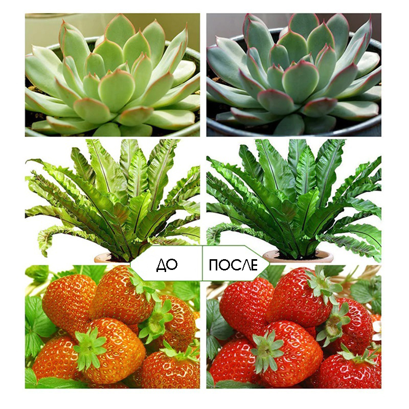 Красный свет способствует фотосинтезу растений, прорастанию, цветению и плодоношению.