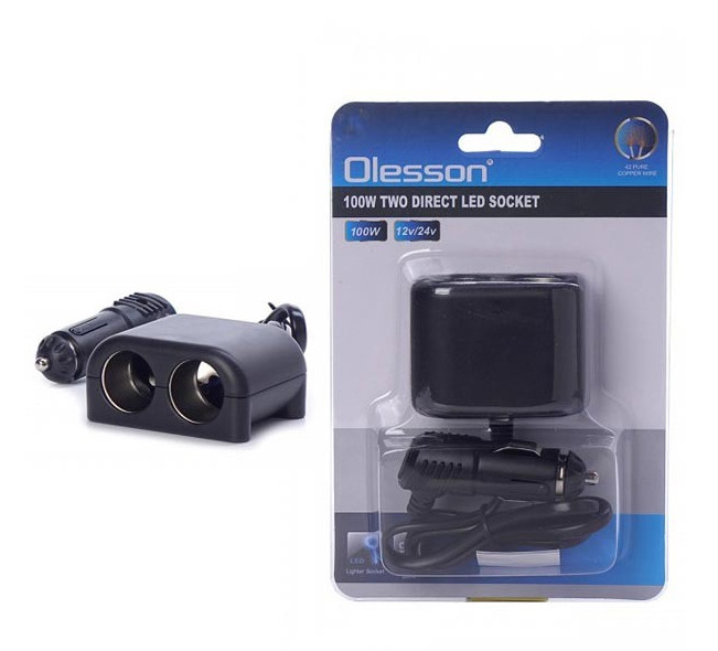 Разветвитель розетки автоприкуривателя OLESSON 1644 (2 гнезда, 100W) на проводе, черный