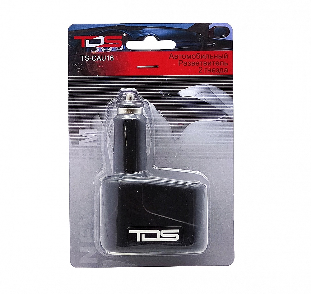 Разветвитель розетки автоприкуривателя TDS TS-CAU16 (2 гнезда) черный