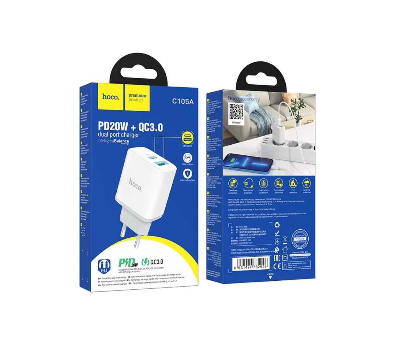 Сетевой адаптер HOCO C105A Stage dual port PD20W+QC3.0 charger, белый