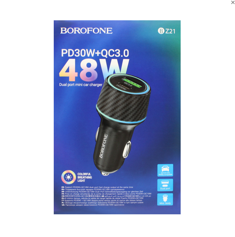 Автомобильное зарядное устройство BOROFONE BZ21 — идеальный аксессуар для вашего автомобиля, который позволит вам заряжать ваши устройства во время поездок или в пути.