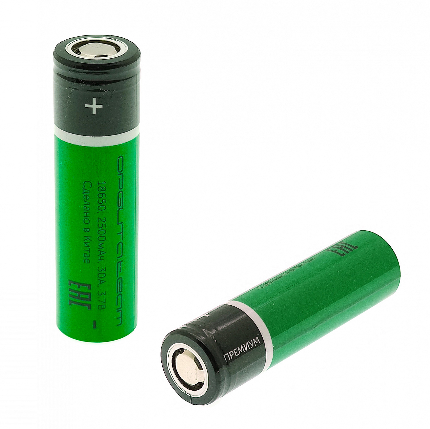 Аккумулятор 18650 Орбита (30A, 2500mA, 3,7В, плоский пин) (УПАКОВКА 2ШТ)