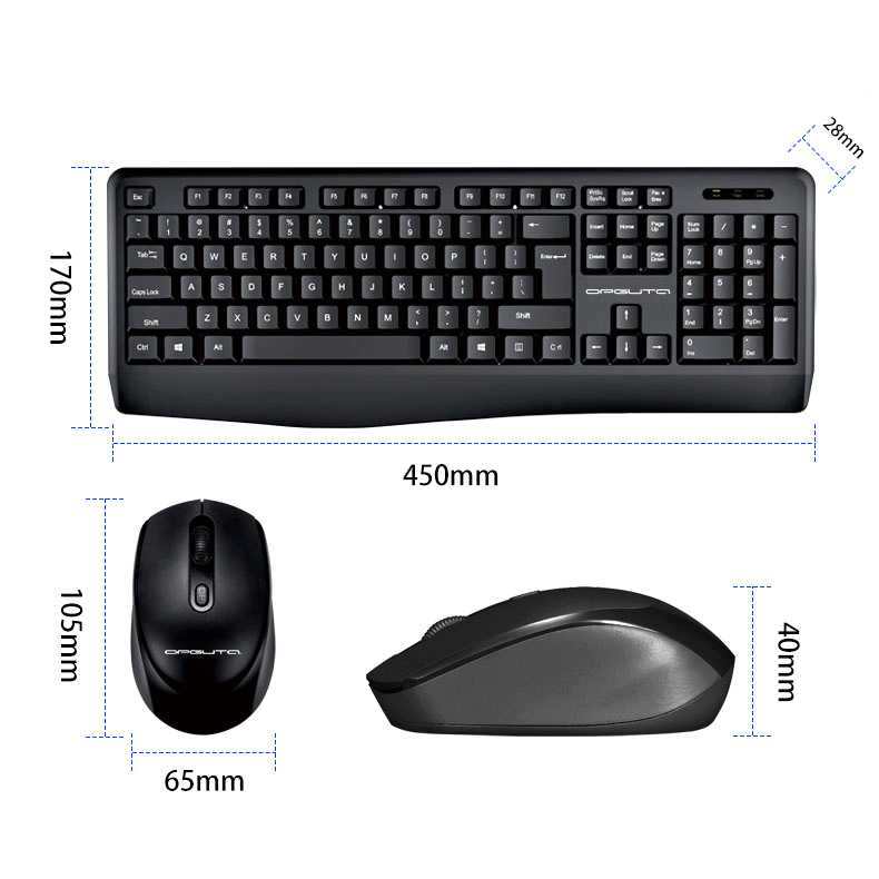Комплект из клавиатуры и мыши от известного производителя периферийных устройств Орбита представляет из себя беспроводную полноразмерную клавиатуру с широким функционалом, и эргономичную легкую мышь, подключаемую к системе посредством USB трекера. Питание девайсов осуществляется двумя батарейками типа AAA.