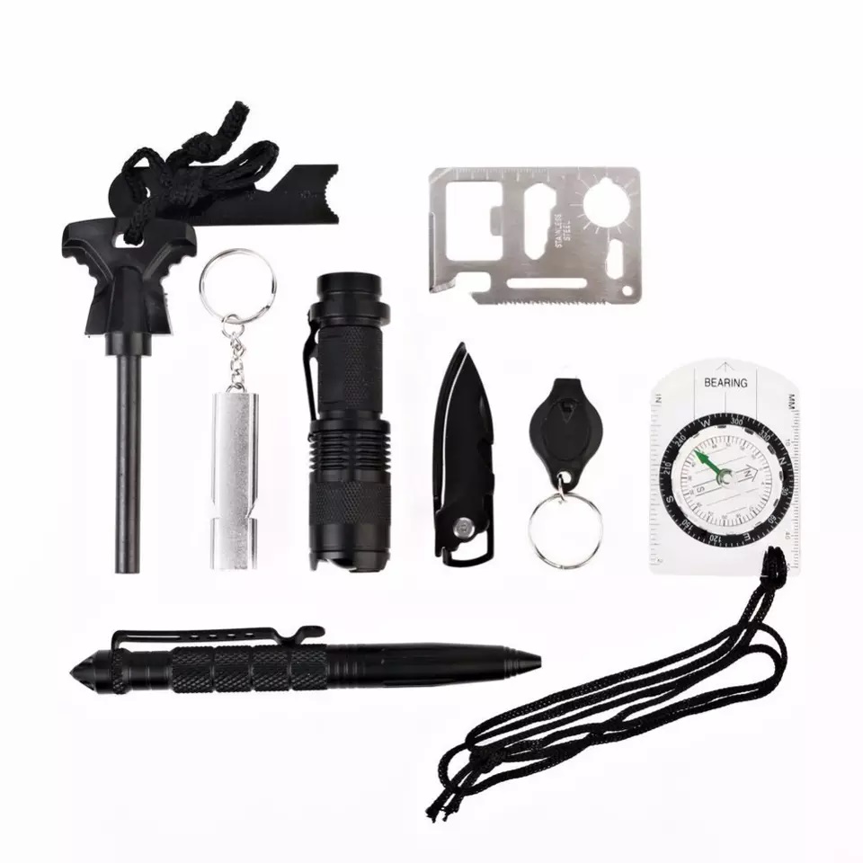 Набор для выживания Патриот PT-TRS03 В набор входит:1) Инструмент карта 2) Фонарик (3 режима, питание АА-в комплект не входит)3) Фонарик4) Кремень (огниво) 5) Свисток 6) Компас 7) Тактическая ручка 8) Нож