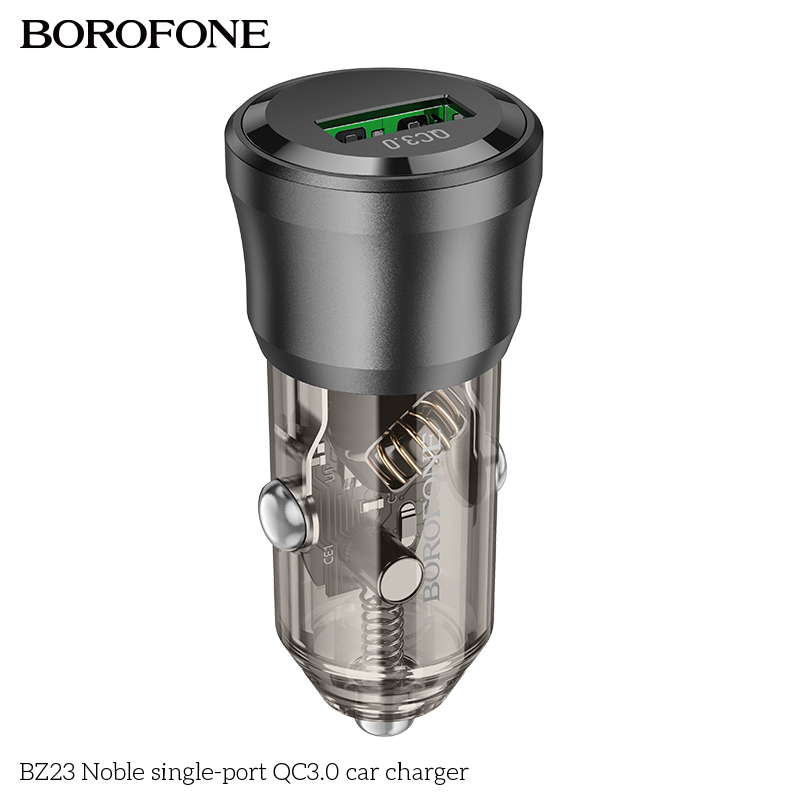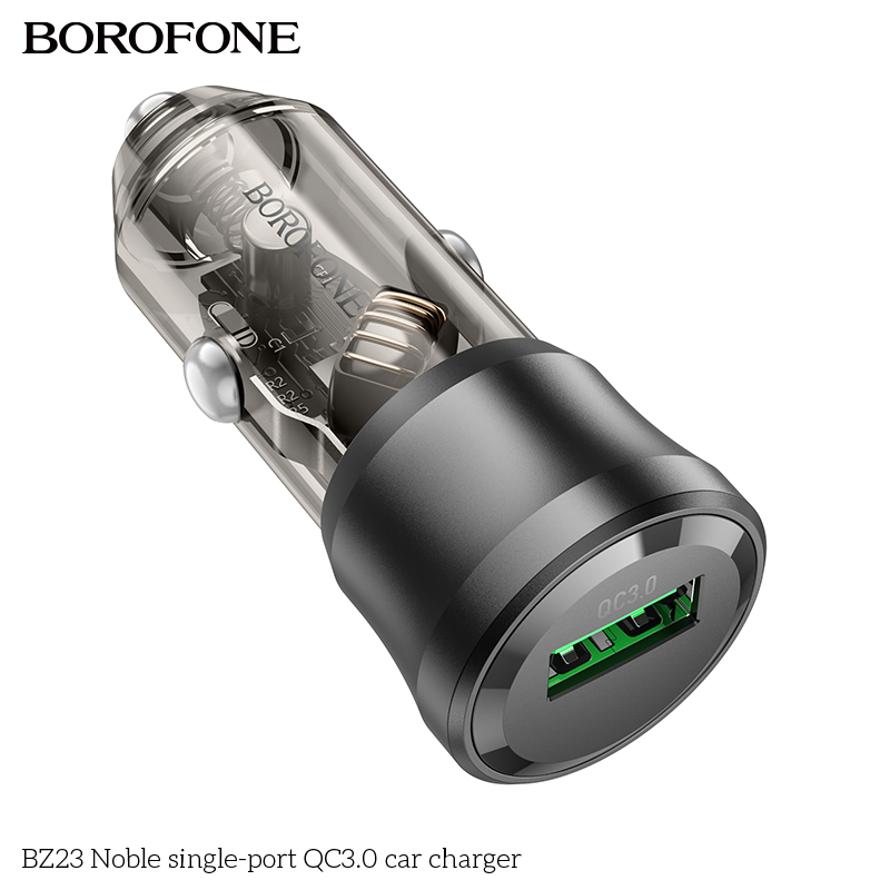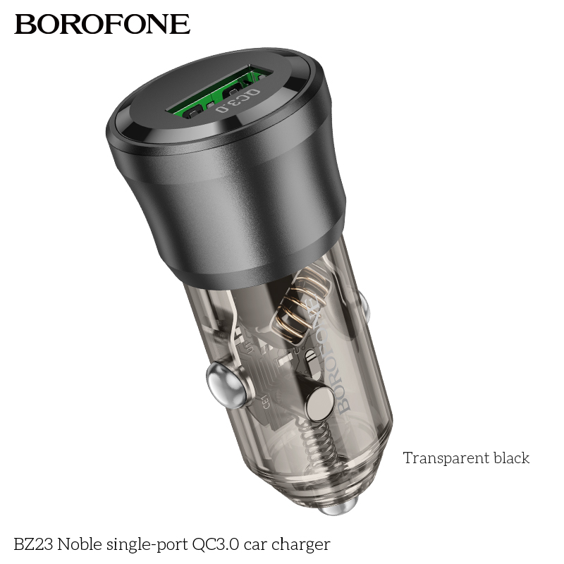 Автомобильный адаптер BOROFONE BZ23 Noble single port QC3.0 car charger set, прозрачный черный