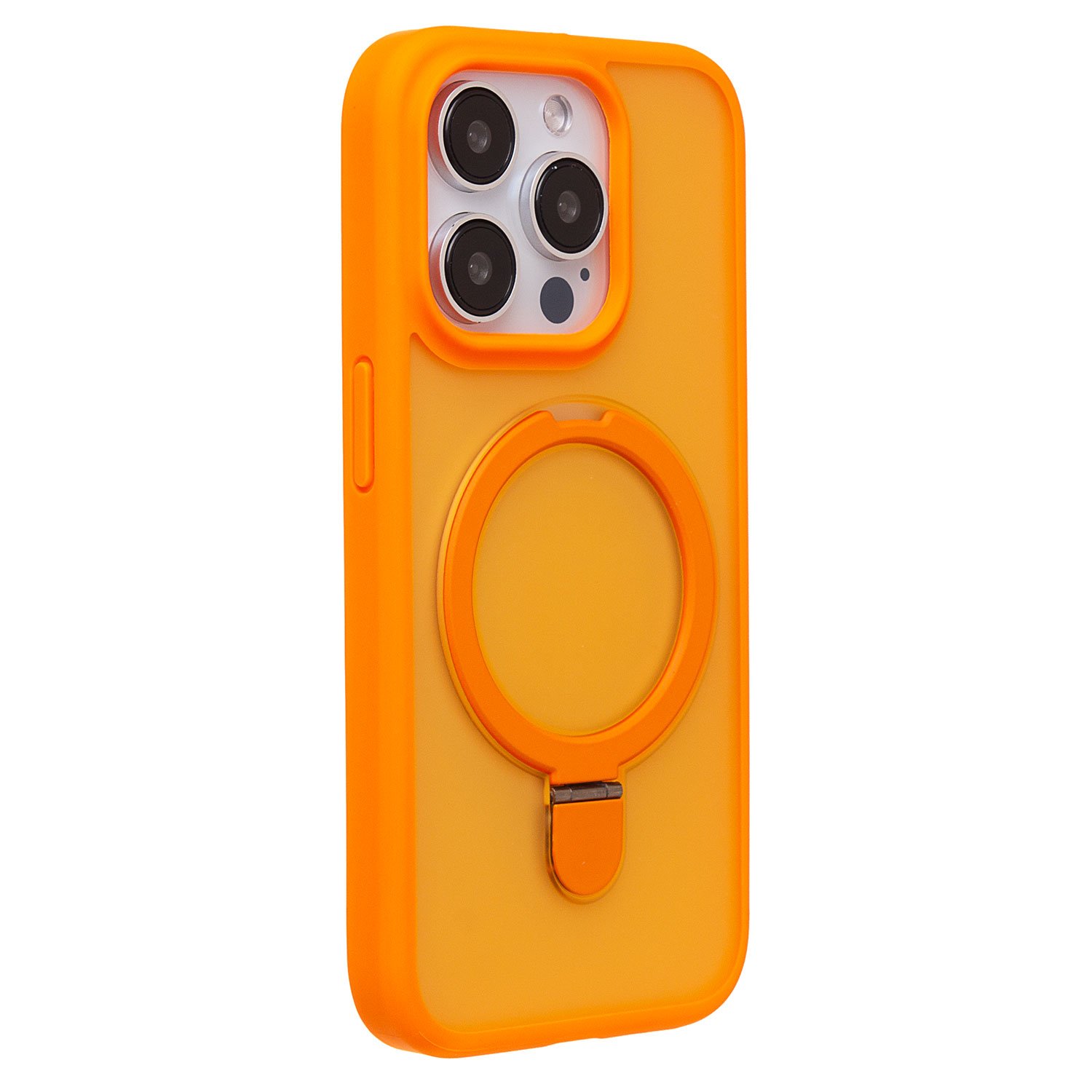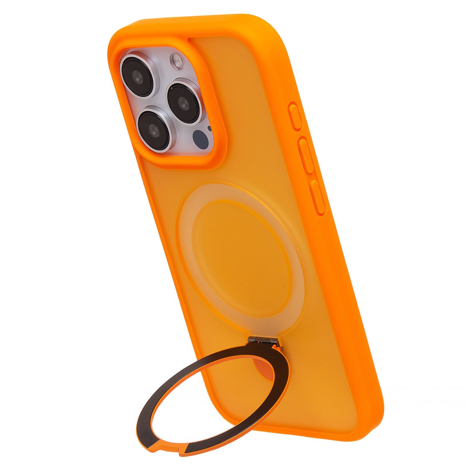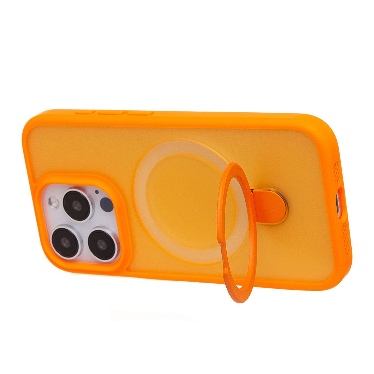 Чехол силиконовый MagSafe iPhone 15, с кольцом подставкой, оранжевый