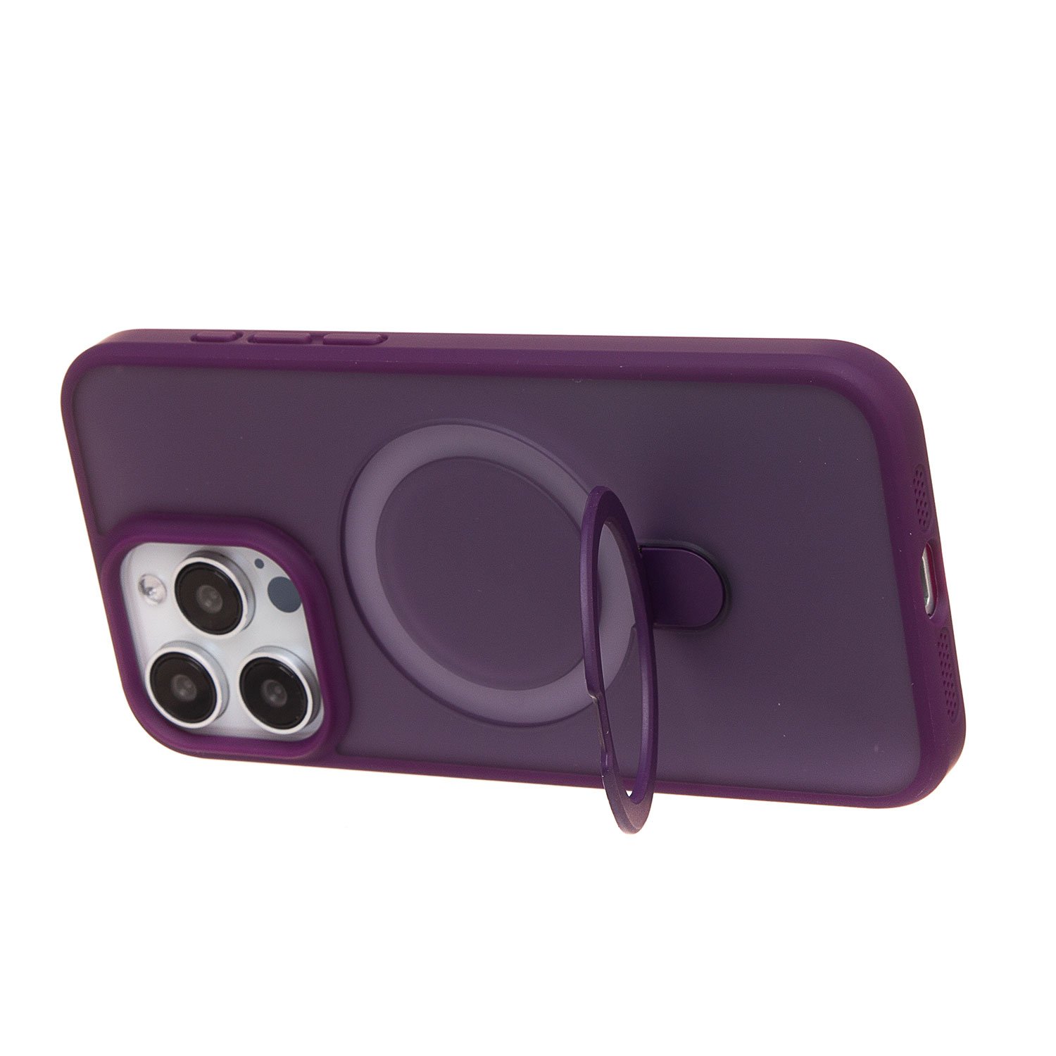 Чехол силиконовый MagSafe iPhone 15, с кольцом подставкой, фиолетовый