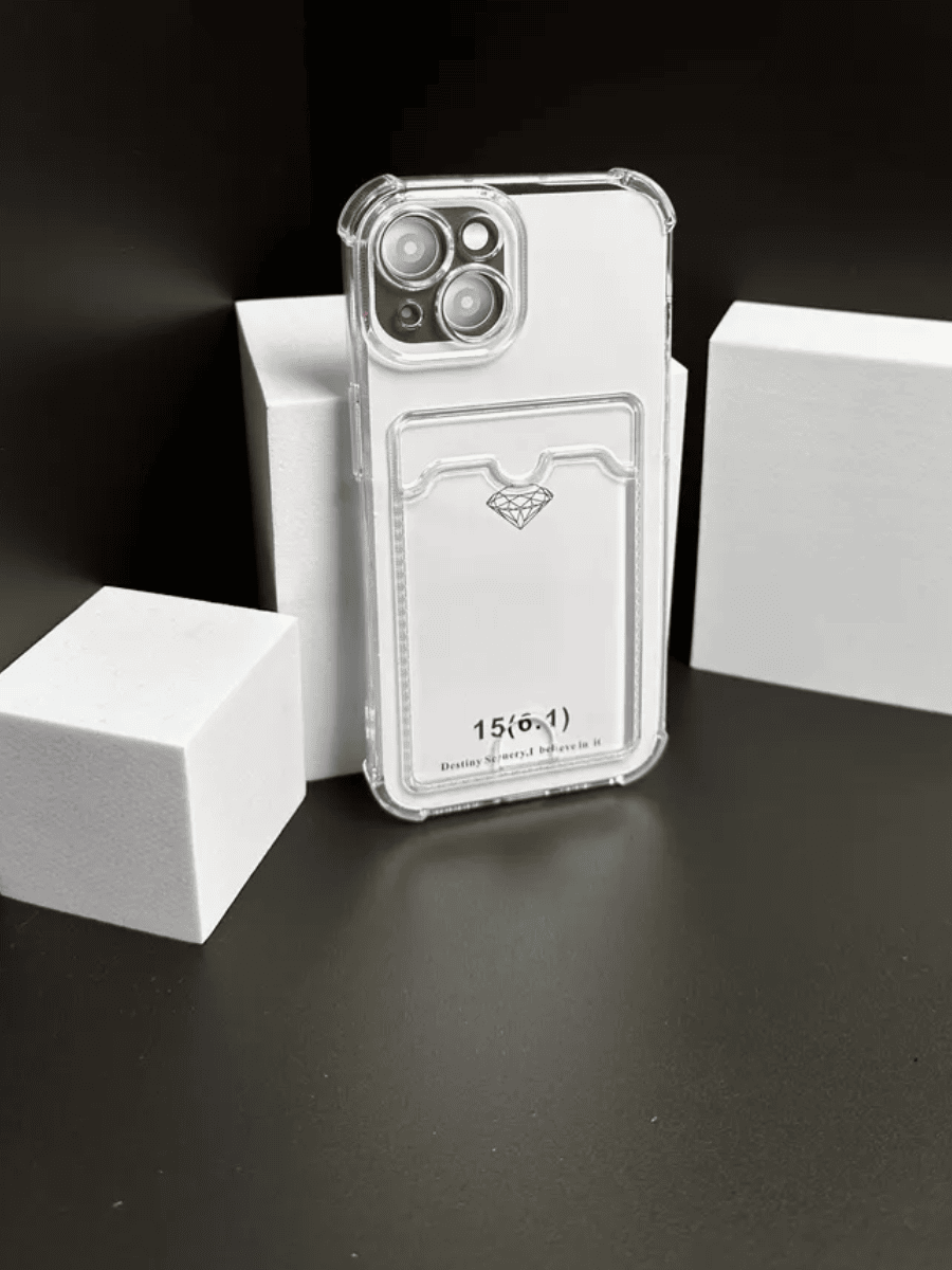 Чехол силиконовый с визитницей iPhone 15 Plus, прозрачный