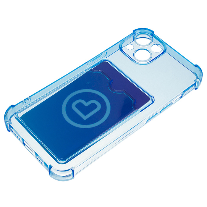 Чехол силиконовый с визитницей iPhone 15 Pro, прозрачный голубой