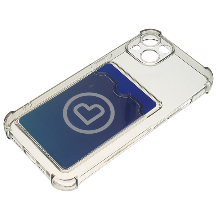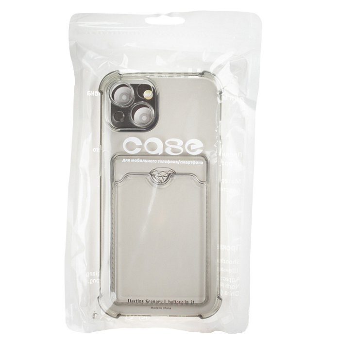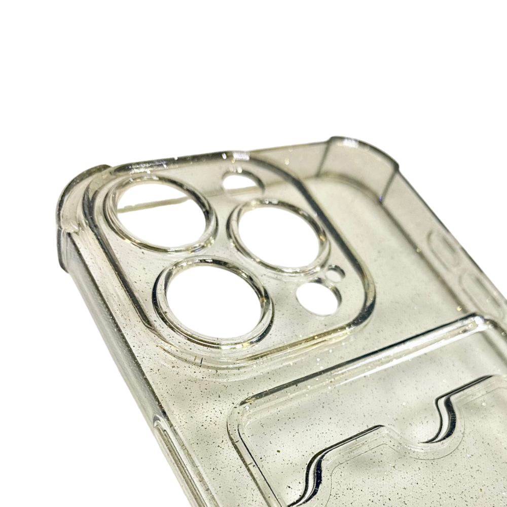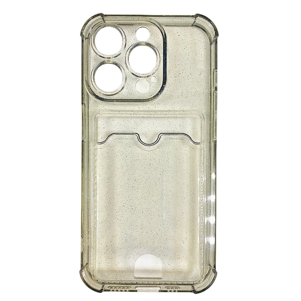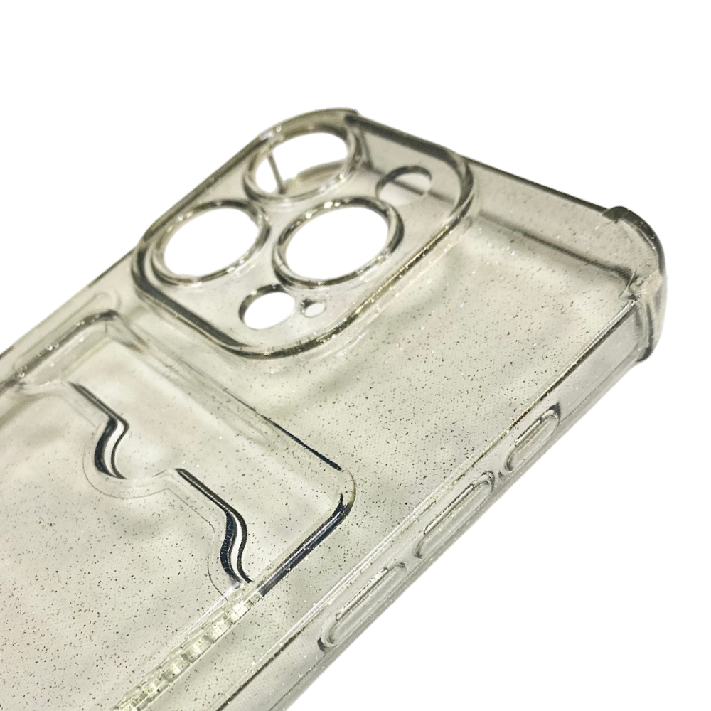Чехол силиконовый с визитницей iPhone 15 Pro, прозрачный черный, с блестками