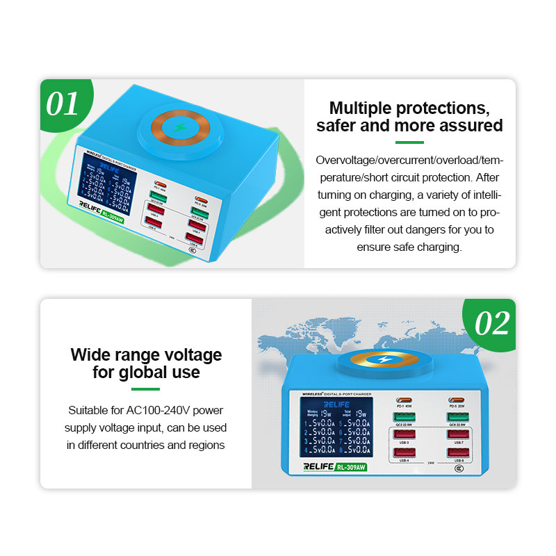 Источник питания RELIFE RL-309AW (6 портов USB + 2 Type-C + беспроводная зарядка)