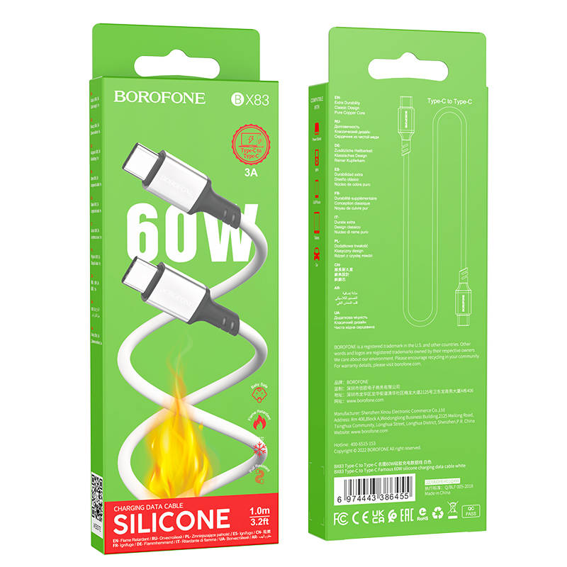 USB-C кабель BOROFONE BX83 Famuos Silicone Type-С to Type-С PD60W (100см), черный