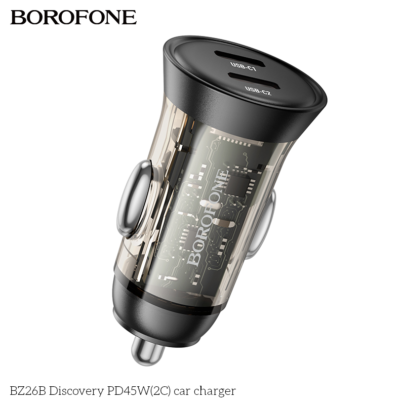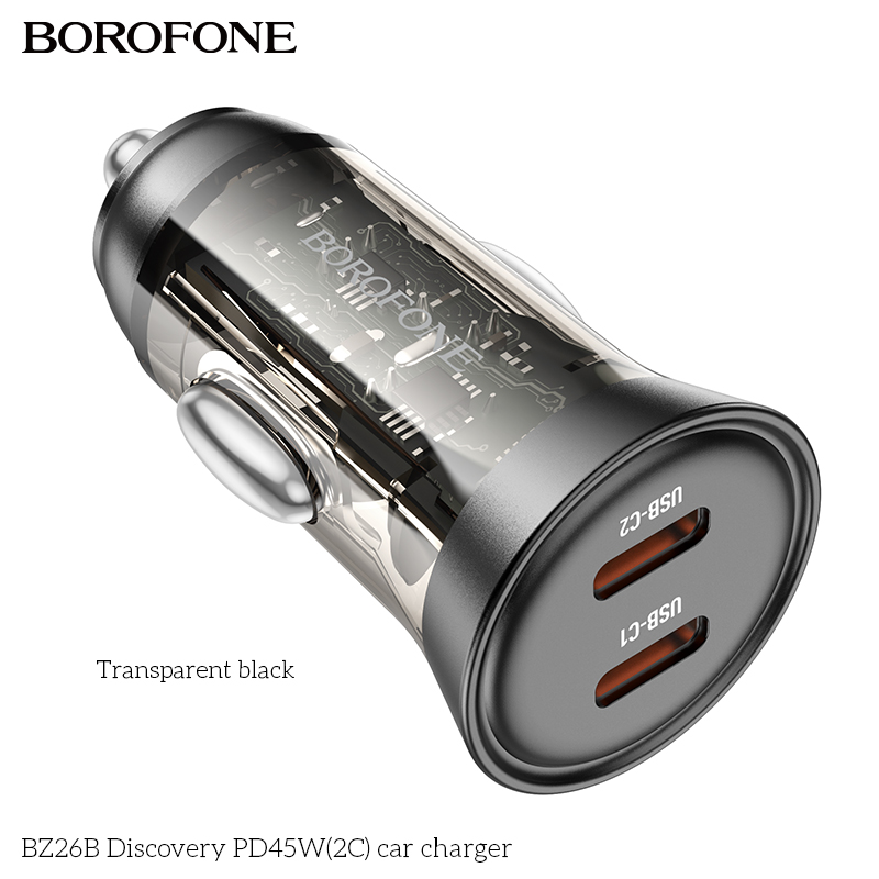 Автомобильный адаптер BOROFONE BZ26B Discovery PD45W (2C) car charger, прозрачный черный