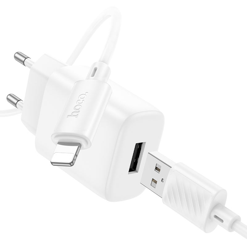 Сетевой адаптер HOCO C134A Solid один порт 2.4A с кабелем Lightning, белый