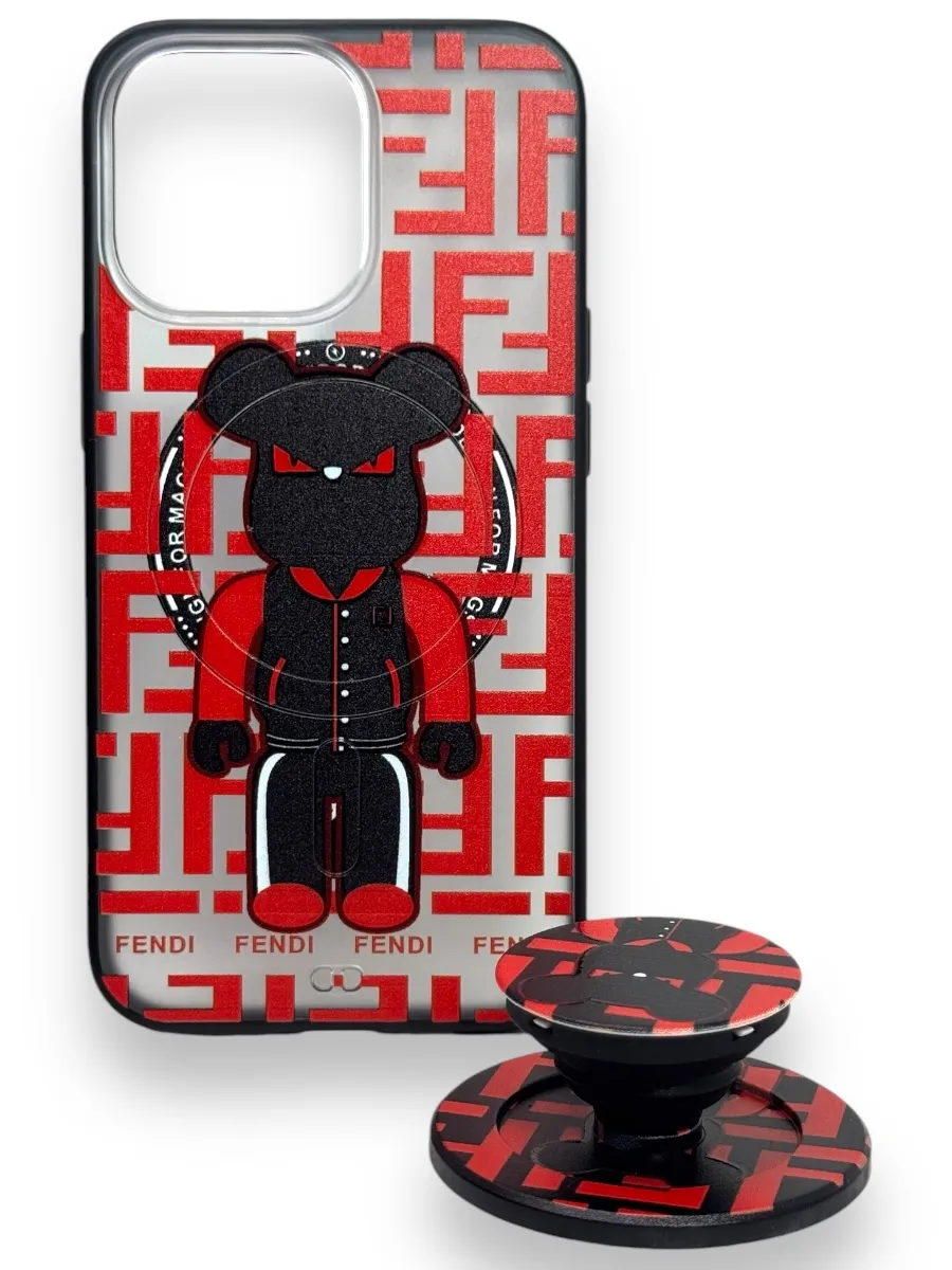 Чехол пластиковый с Magsafe и попсокетом для iPhone 13 Pro Max, Черный медведь