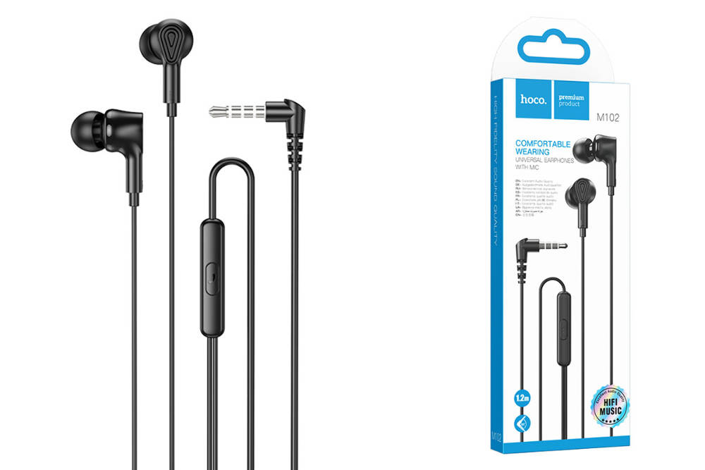 Проводные наушники с микрофоном HOCO M102 предлагают качественное звучание, стильный дизайн и легкую конструкцию, что делает эти наушники идеальным выбором для ежедневного использования.