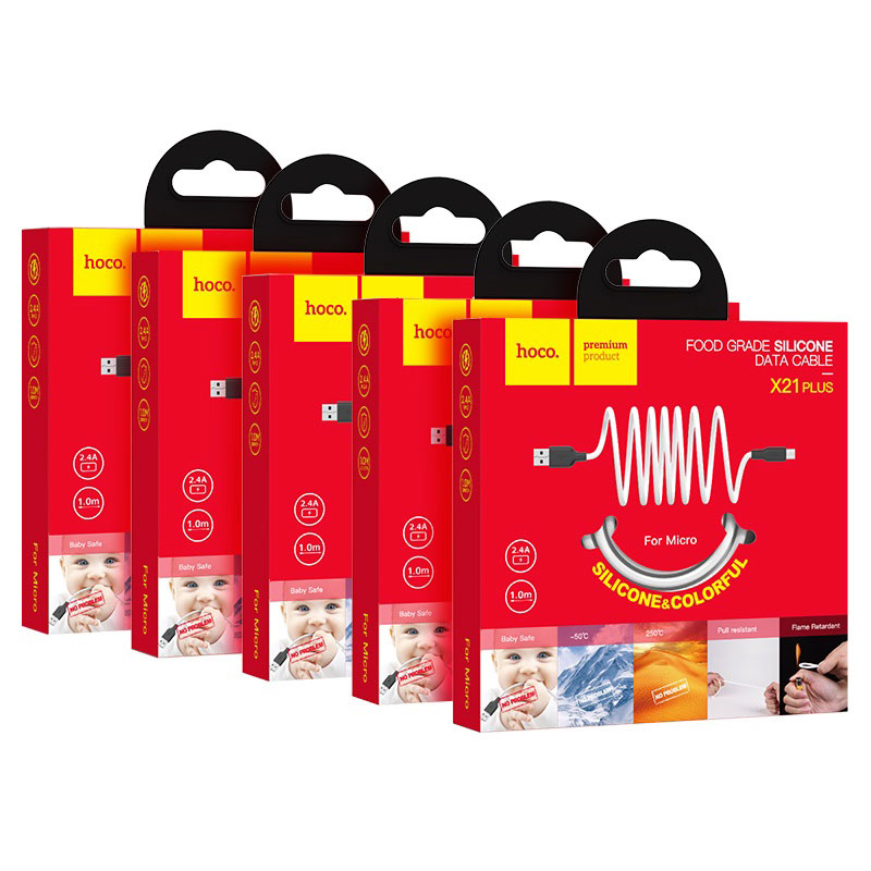 USB кабель micro USB HOCO X21 Plus Silicone (200см. 2.4A), черно-белый
