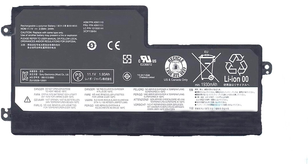 АКБ для ноутбука Lenovo ThinkPad T440S (ASM P/N 45N1110) 11.4V 24Wh (Org)