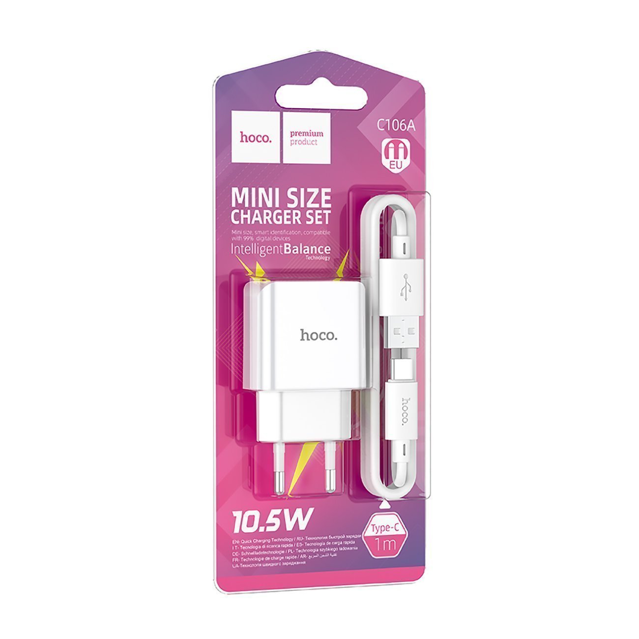 Сетевой адаптер HOCO C106A Leisure 2,1A/10W с кабелем Type-C, белый