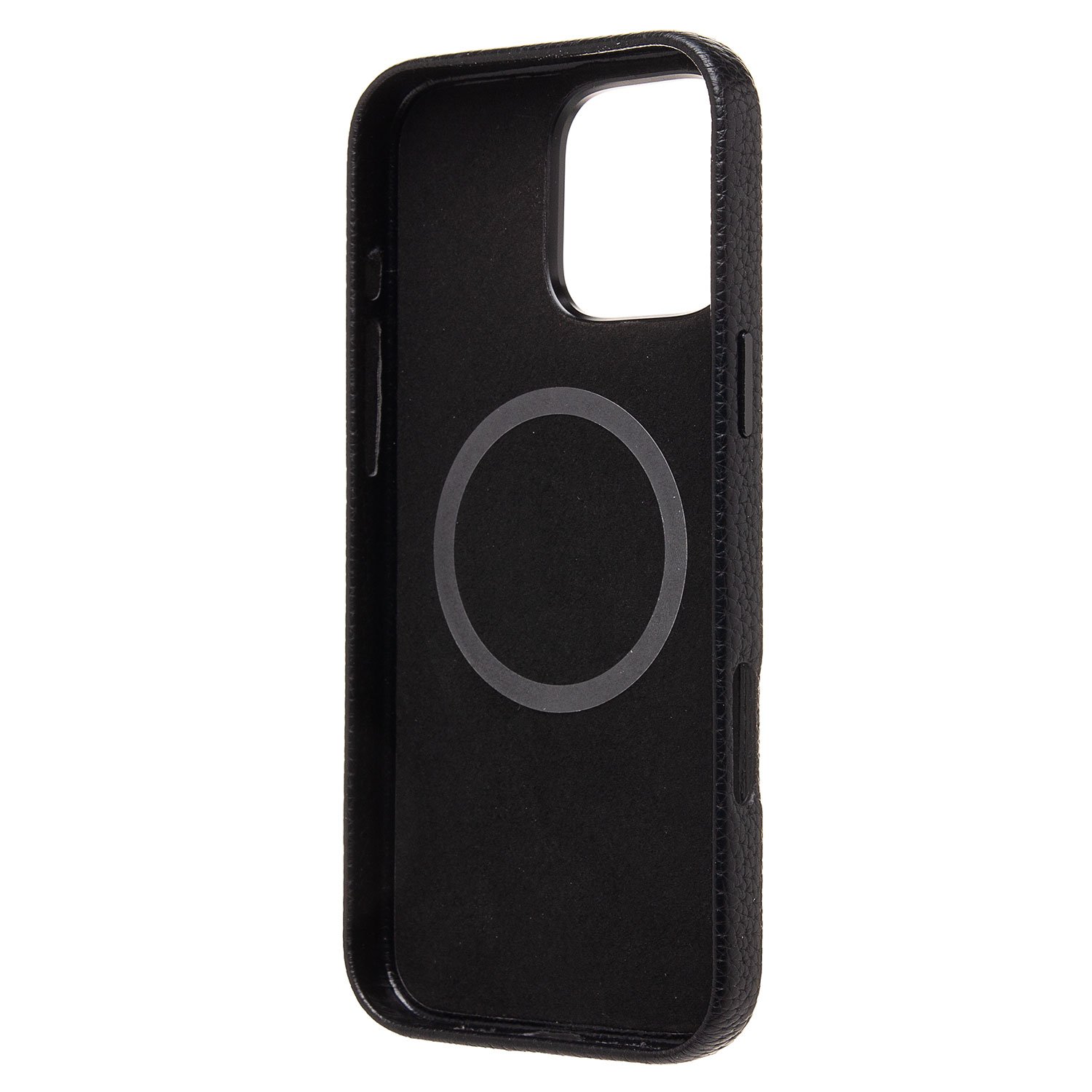 Чехол натуральная кожа зернистая MagSafe Matte iPhone 16 Pro Max, черный