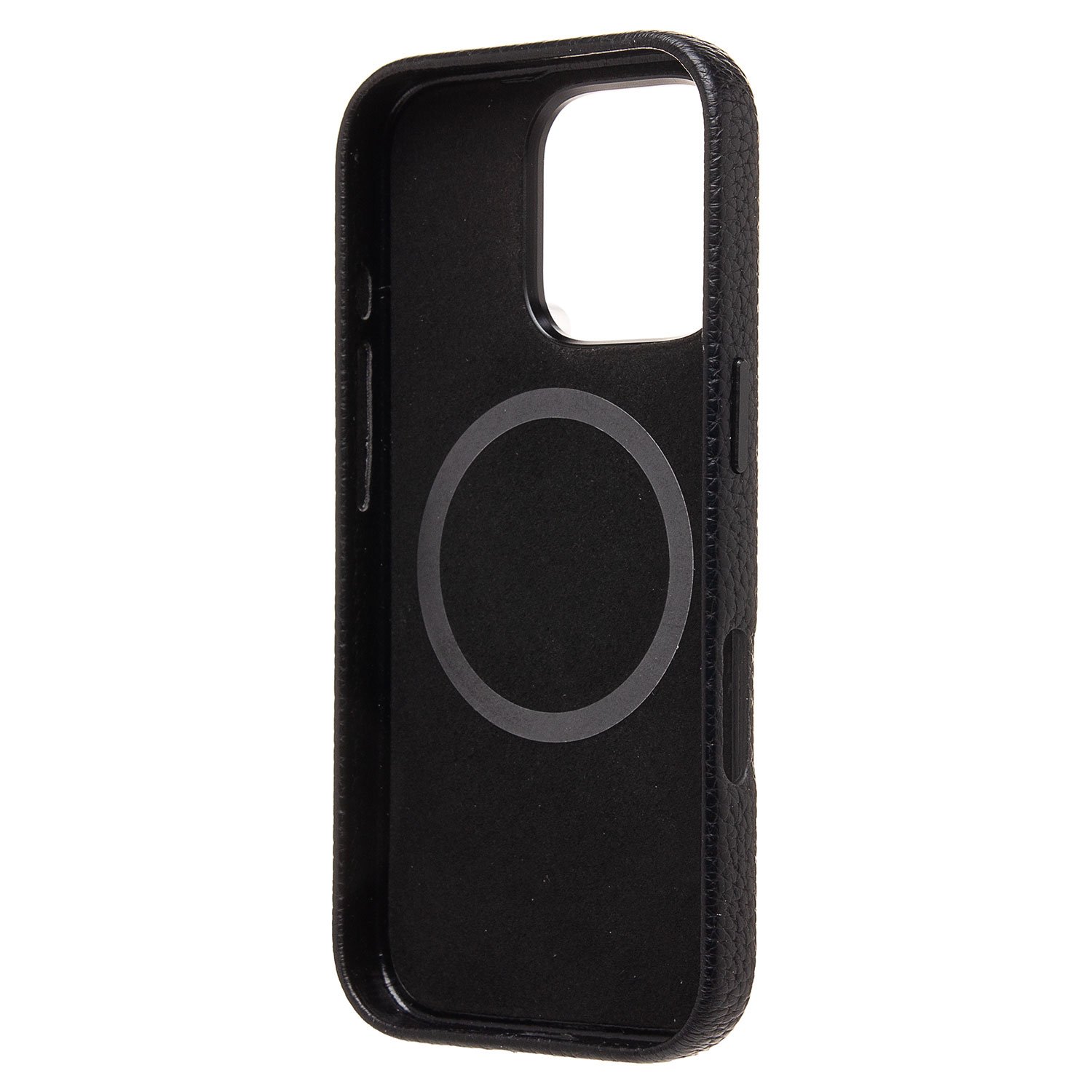Чехол натуральная кожа зернистая MagSafe iPhone 16 Pro, черный