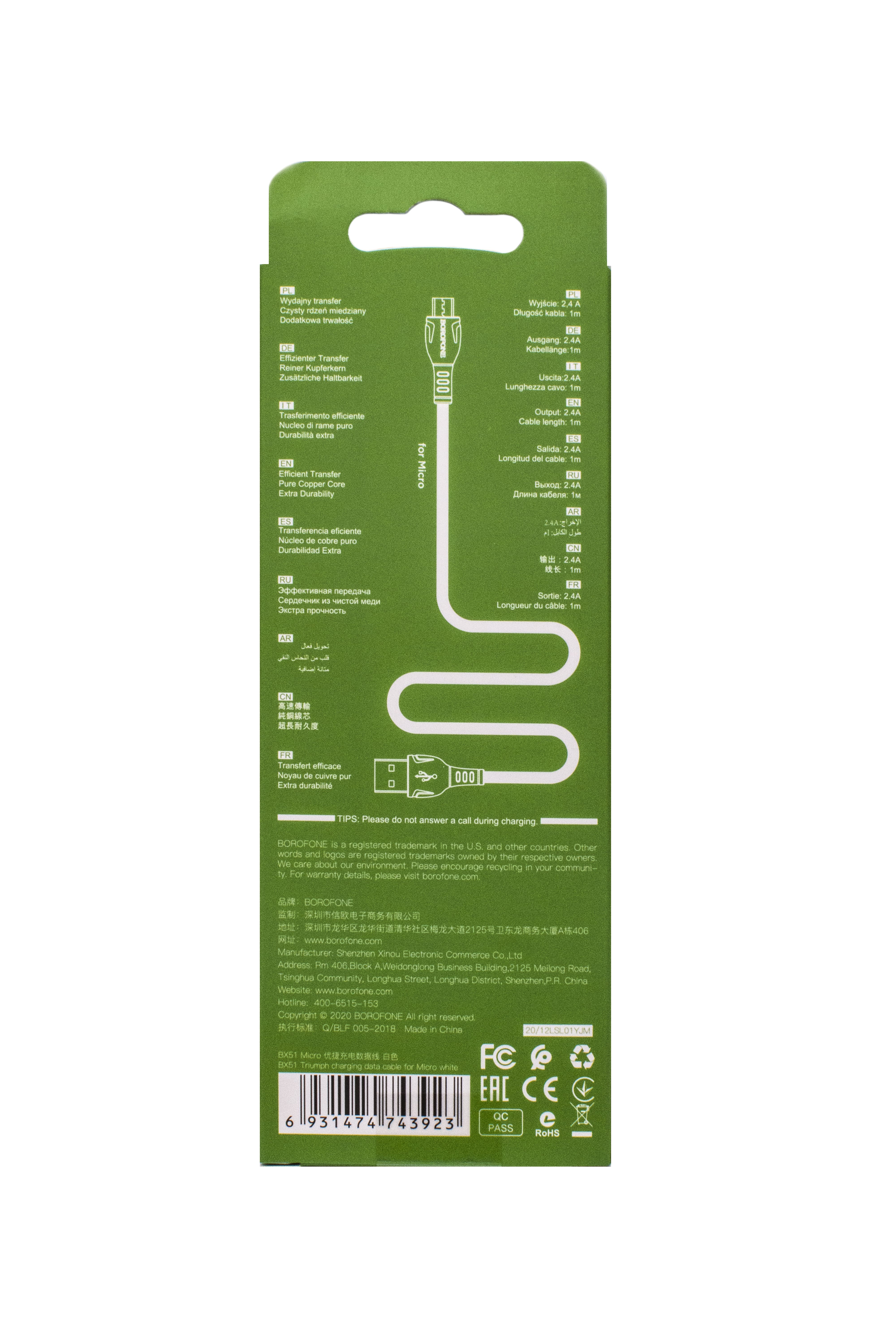 USB кабель micro USB BOROFONE BX51 Triumph (100см), белый