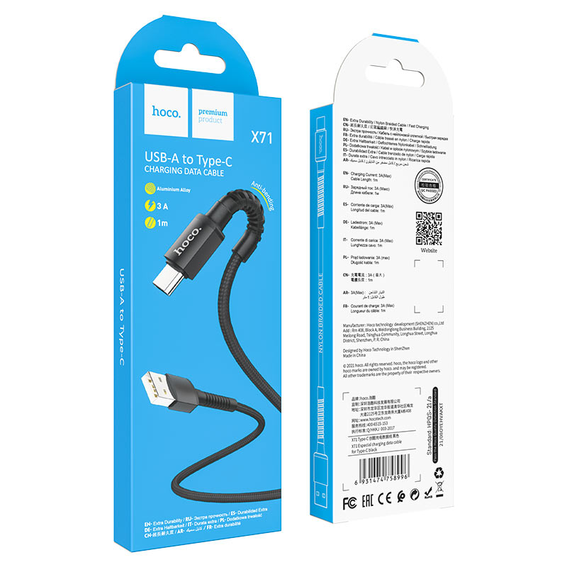 USB кабель Type-C HOCO X71 Especial (100см. 3.0A), черный