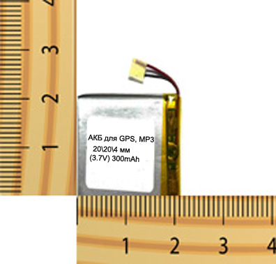 Аккумуляторная батарея (АКБ для GPS, MP3 20\20\4 мм (3.7V)) 300mAh