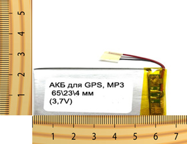 Аккумуляторная батарея (АКБ для GPS, MP3 65/23/4мм (3.7V))