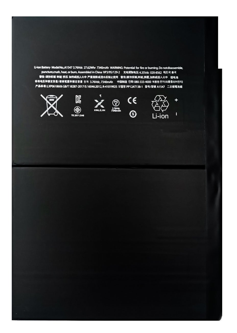 (АКБ iPad 6/iPad Air2) выдерживает до 850 циклов заряда/разряда.Выполнен из качественных материалов с соблюдением всех технологий. Данные аккумуляторы производятся на заводах компании и обладают отличным качеством работы. Емкость 7340 mAh. Литий - ионные аккумуляторы (Li-ion) Apple iPAD 6 AIR2 (A1566/A1567) (7340 mAh) лучшие по соотношению цена-качество. Полностью отсутствует эффект памяти. Продолжительность работы в среднем 3-4 года. Это достаточно маленький, лёгкий непривередливый к периодичности зарядки аккумулятор.