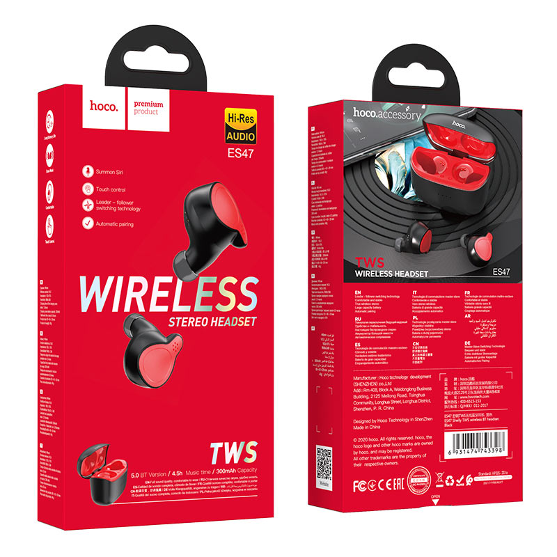 ES47 Shelly TWS беспроводная гарнитура, BT V5.0, батарея гарнитуры 40mAh для 4.5 часов работы в режиме разговора или воспроизведения музыки, 120 часов в режиме ожидания, с зарядным чехлом на 300mAh