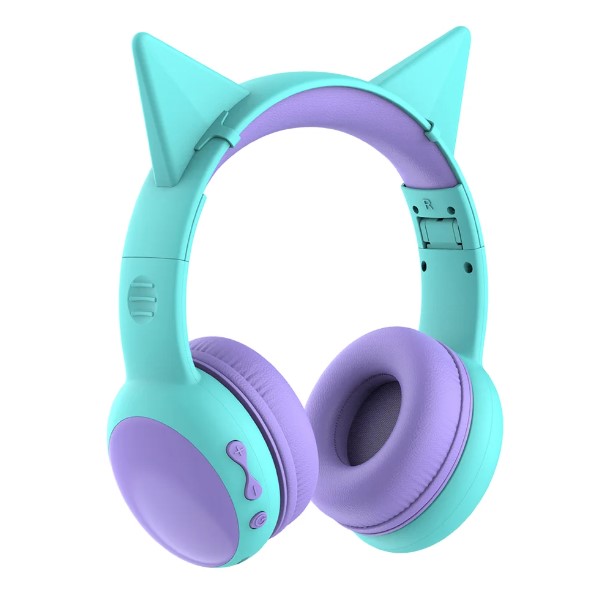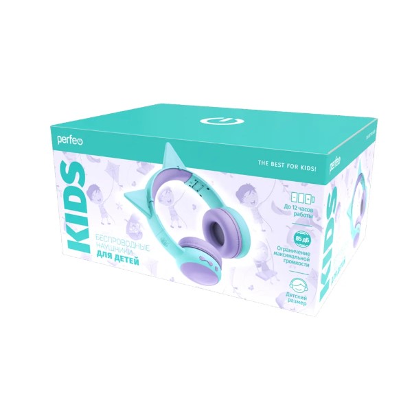 Беспроводные наушники десткие Perfeo Kids с ушками (время работы до 12 часов в режиме ожидания), голубые
