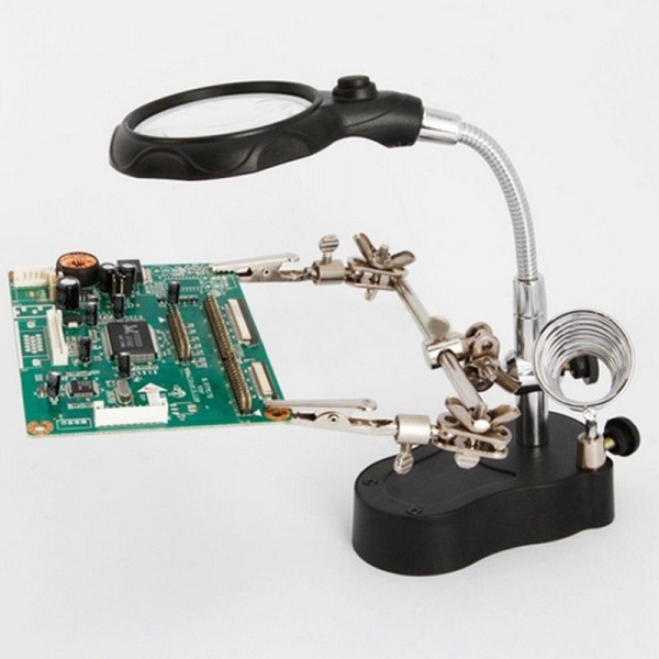 Применяется для мелкого ремонта радиоаппаратуры. Удобные зажимы для платы позволят освободить руки.