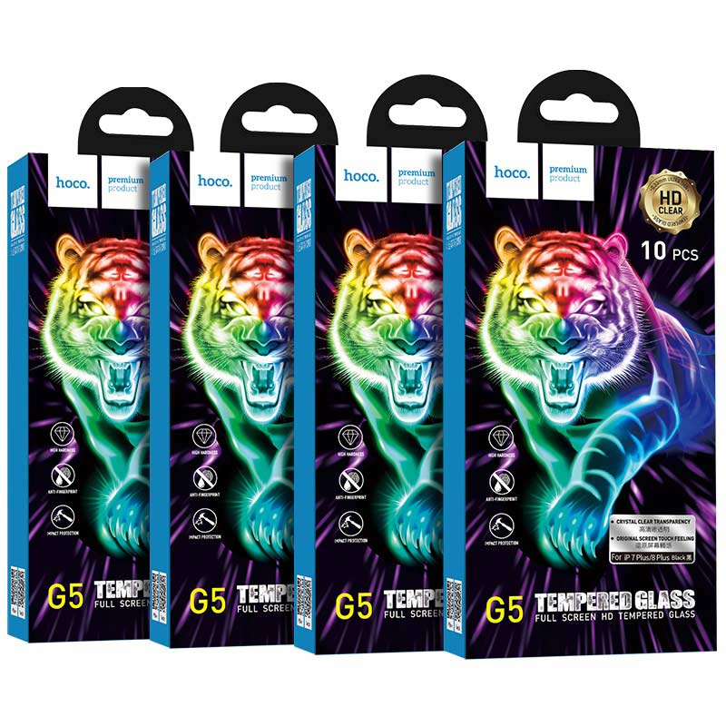 Защитное противоударное стекло дисплея iPhone 7 Plus/ 8 Plus HOCO G5 полное покрытие, черное