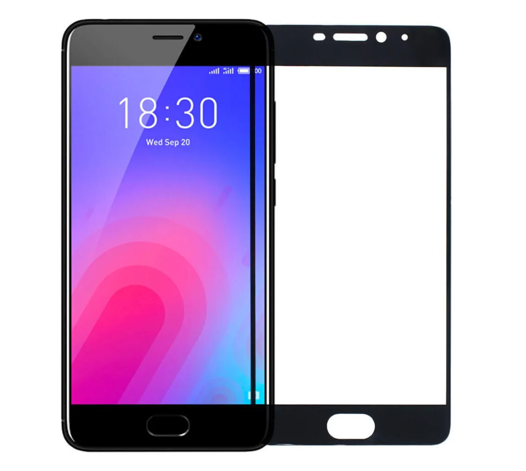 Защитное противоударное стекло дисплея Meizu M6 полное покрытие. цвет черный