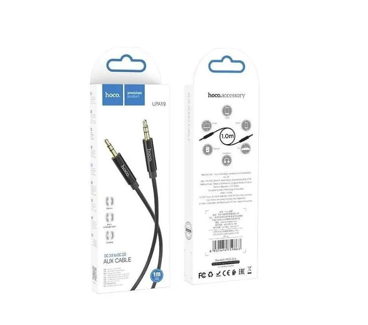 Кабель аудио Hoco AUX UPA 19 с коннекторами 3,5 мм поможет быстро и просто объединить ваш смартфон, планшет или плеер с автомагнитолой или музыкальным центром в одну аудиосистему.