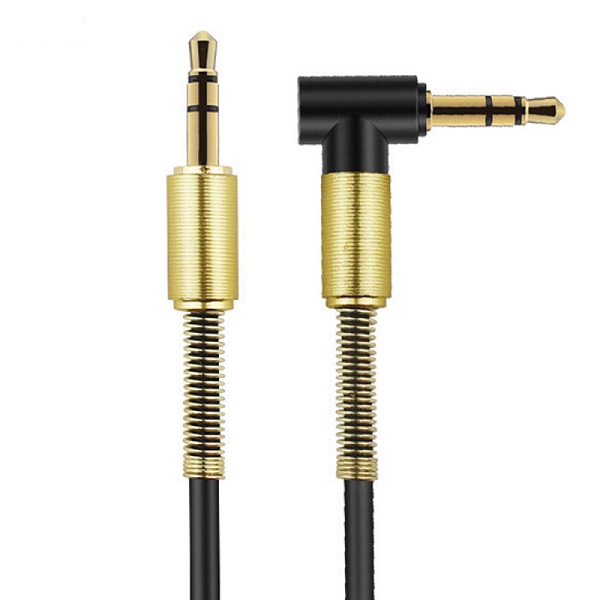 Кабель AUX jack 3,5 выход на jack 3,5 выход. круглый Г-образный с пружиной (1 метр)